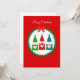 Gnomo de Natal bonito e pinheira no Cartão de Saudação de Natal vermelho. Todo texto pronto para ser personalizado.