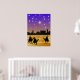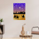Os três sábios se aproximando de Belém com a estrela pairando no céu.