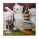 Este design apresenta uma ilustração de Currier e Ives. Ele representa três gatinhos brancos em pé em uma mesa. Um dos gatinhos é bebendo de um copo de vinho do porto. O outro gatinho abriu uma lata de sardinha e está comendo um peixe alegremente. O gatinho no meio parece ter ciúmes do gatinho que está bebendo do vinho e está agindo agressivamente. É uma bela imagem de gatos de estimação se divertindo em uma festa que foi jogada pelos donos humanos. O trabalho artístico original foi concluído em 1871.