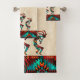 Decorre o seu banheiro com este único "Um dos tipos", no sudoeste de Kokopelli Bath Towel Set! Ele apresenta três sudoeste de Kokopelli tocando flauta e dançando sob o sol em um fundo de arenito de Tan... cercado por uma borda sudoeste em Turquesa, Laranja e Preto! Esta é uma Design de Arte Original do Artista Kerry Miller.