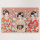 Esta quebra-cabeça de guisada de arte geisha apresenta três maiko de Kyoto vestindo lindos kimonos em um fundo rosa. Seria um belo presente de verão para um entusiasta do quebra-cabeça.
