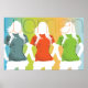 Três mulheres vestindo copos coloridos. Esta design parece realmente eficaz nestes Poster