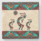 Proteja a sua Mesa com esta Porta copos exclusiva de "um tipo" do sudoeste de Kokopelli! Ele apresenta três pessoas no sudoeste de Kokopelli tocando flauta e dançando sob o sol em um fundo de arenito de estanho... cercado por uma borda sudoeste em Turquesa, Laranja e Negro!