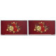 A composição de duas rosas vermelhas pintadas artisticamente e uma rosa ouro, decorada com ouro, folhas de joias sobre fundo texturizado.