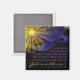 Os brilhantes raios amarelos da estrela de Natal iluminam o caminho para os três sábios durante a noite. Viajando pelo camelo, atravessam colinas numa paisagem pouco vegetada em tons de azul e roxo empoeirados. Este ímã faria um presente de Natal excelente. Ele apresenta um verso bíblico como parte do design, Mateus 1:22-23: 'Tudo isso aconteceu para realizar o que foi falado pelo Senhor através do profeta: "Olha, a virgem conceberá e suportará um filho, e eles o nomearão Emmanuel," que significa, "Deus está conosco." Excelente para aqueles que querem que seus corações sejam aquecidos pela Bíblica história - dos profetas ao nascimento de Jesus - por trás do Natal. Este ímã pode ser personalizado com um verso Bíblia - ou outro texto inspirador ou citação - da sua escolha.