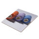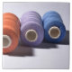 Três Spools de Thread ou Yarn: laranja, roxo e azul.