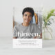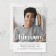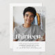 Um simples convite para o Aniversário de 13, com a sua própria fotografia e as palavras "treze" sobre o topo.