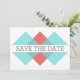 Triada Geométrica Moderna e Chic Salve o Anúncio de Data com um design de triângulo na moda em turquesa e vermelho. Fácil de personalizar, este simples e elegante design pode ser personalizado com seus detalhes de casamento. Clique em "Personalizar" para encontrar mais opções de personalização.
