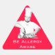 Alergia Etiqueta de segurança com conhecimento de causa em forma triangular com fotografia retrorativa do cozinheiro em fundo vermelho com o texto "Be Allergy Aware"