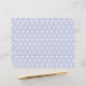 Triângulos decorativos em design azul, branco e roxo, com renda decorativa.