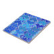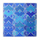 Azulejo cerâmico em um contemporâneo de inspiração africana toma um impressão têxtil tribal, renderizado em textura batik tingida - tons de azul de cobalto, azul ceruliano e azul de turquesa, acentuados com branco