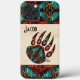 Personalize este Único "Um dos tipos" Tribal Bear 13 Pro Max. Ela apresenta uma pata de urso tribal norte-americana nativa, que representa proteção e boa saúde num fundo de arenito de estanho e cercada por uma fronteira sudoeste em Turquesa, Laranja e Negro! Design de Arte Gráfica Original Criada pelo Artista Kerry Miller. Este é um Design de Arte Gráfica Original criado pelo Artista Kerry Miler.