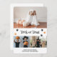 Cartão de Dia das Bruxas com uma colagem de fotos e impressões de pata na frente e um fantasma com uma lanterna no fundo. Personalize facilmente este cartão de Dia das Bruxas com suas fotos, o nome da família e o texto. Este cartão de Dia das Bruxas perfeito para amantes de gatos ou cães pode ser transformado em qualquer cor usando a ferramenta de personalização.