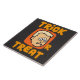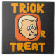 La phrase Trick or Treat avec un dessin drôle d'halloween représentant une tête de Vampire sur un fond Orange.