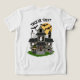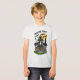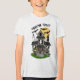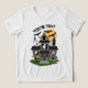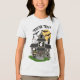 Trick ou trata a casa assombrada do Halloween com uma camiseta de bruxa, com uma casa assombrada de fantasmas bonitos, morcegos, gatos pretos e uma bruxa.