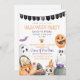 Trick ou trate o convite de aniversário de Halloween. Uma coleção super divertida de Halloween criada com balões, doces, fantasmas, um morcego, chapéu de bruxa e crânio. Perfeito para um Festa de Halloween, Partido Cocktail, Partido Jante Spooktacular,
