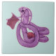 Uma ilustração engraçada de um tricô cobra de cobra de tricô. O cobra cor-de-rosa e roxo tem uma bola de lã e agulhas de tricô. Um design de répteis para quem ama tricotar ou crochê.