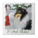 Collie de três cores, ainda acredito. Arte de tirar o fôlego tem um belo Papai noel de collie de três cores na floresta. Nossa série original "Eu ainda acredito" faz presentes de Natal maravilhosos para tesourar para amantes ruins de collie.