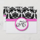 Vintage Cores damasco Florais Modernas Negra e Branca com Convites de Casamento Rosa Bright Fuchsia. Perfeito para o Barroco Rococó, Renascença medieval, Art Deco Art Nouveau, Roaring 20s Gatsby, Casamentos vitorianos ou Themes de Casamento Farmário Elegante.