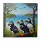 Trio Costeiro: Três Puffins na Praia em Óleos
