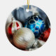 Um trio de enfeites de natal vermelhos, brancos e azuis com um fundo velho da bandeira. Aperfeiçoe para um Natal patriótico e totalmente customizável para que você personalize como você por favor!