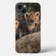 Adam Jones/DanitaDelimont.com | África, Kenya | Kenya, Maasai Mara, trio de seis filhotes de leão semanas de idade que sentam-se além do leão da mãe