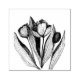 desenho manual feito em carimbo. Desenho a preto e branco de tulipas, feito em caneta de caligrafia a tinta