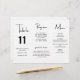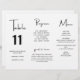 Transforme esta folha de papel num moderno menu de casamento triplo, número da mesa e programa com informações sobre a linha do tempo, coisas que são boas de conhecer, menu comida e bar. Basta dobrar, gravar a costura na parte de trás e usar este moderno programa de papelaria para sua recepção de casamento.