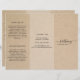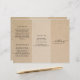 Panfleto rústico de três dobras com fundo de papel marrom falso. A frente tem o nome da sua empresa com floreios em uma fonte elegante de letra manuscrita, juntamente com o seu título ou serviço. O painel traseiro tem suas informações de contato e o painel de dobra interna tem dois cabeçalhos e caixas de texto. O interior tem vários modelos para informações sobre o seu negócio nos painéis externos e uma lista de preços no painel do meio. Este design simples e feminino é ótimo para um negócio de artesanato feito à mão.