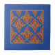 Um azulejo clássico a ser usado como trivit ou para decoração, com um padrão tradicional de "pulgas de folhas" em vermelho e ouro robusto em fundo azul-da-noite e uma grande borda azul.