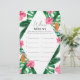Palmas Tropicais Chá de panela de Aquarela. Design apresenta um buquê elegante de cor d'água da praia, com cor verde-d'água e flores, incluindo o hibisco rosa pincelado, laranja e ave azul do paraíso, verde-verde e folha de palma verde-escura.