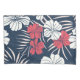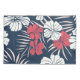 Pink and white flower bloom against a navy blue background on this tropical floral abstract print.