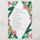 Palmas Tropicais Chá de panela de Aquarela. Design apresenta um buquê elegante de cor d'água da praia, com cor verde-d'água e flores, incluindo o hibisco rosa pincelado, laranja e ave azul do paraíso, verde-verde e folha de palma verde-escura.