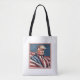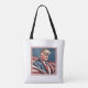 Carregar o seu essencial com estilo com esta bolsa de tote Trump. Perfeito para comprar ou usar diariamente, apresenta uma imagem impressionante de Donald Trump com a bandeira americana.