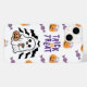 Entre no espírito do Dia das Bruxas com esta capas de iphone divertida com um adorável fantasma segurando um balde de abóbora, cercado por doces e picos de lanternas.