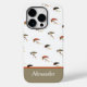 Capa de telefone: Monograma com Nome, Padrão Branca Moderno de Pesca de Moscas. Design de aquarela. Este design é excelente de presentes para pescadores. Pintura do Catálogo Vintage de Mary Orvis