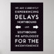 Um tipo de mensagem familiar em uma fonte familiar. Atrasos de norte e sul.