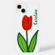 Flor de tulipa vermelha e bonita, iPhone 14 mais Case. Modelo design floral moderno com tipografia na moda. Ideia exclusiva de Natal ou de presente de aniversário para amigos e familiares.