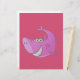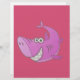 Um tubarão-cartoon rosa com um sorriso grande e dentes grandes.