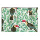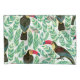Tucanos, folhas tropicais, padrão decorativo.
