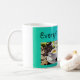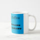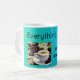 Uma caneca intitulada - "Tudo Café" - "Esfregando o Feijão" e uma foto de uma caneca de café entre os feijões