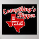 Tudo é maior no Texas, a estrela solitária! É engraçado porque é verdade. Este poster contém um gráfico vermelho e texto na forma do estado do Texas.