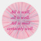 Uma pintura de cor-de-rosa, azul e roxo misturados, com a afirmação, "Tudo está bem, tudo está bem. Tudo está muito bem", está impresso em autocolantes. Pode personalizar com sua própria mensagem positiva.