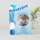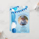 Tudo no convite azul do aniversário da foto
