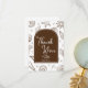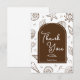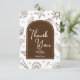 Este cartão de agradecimento Brown Thank You Card apresenta um fundo costeiro quente repleto de rabiscos marrons caprichosos de conchas, estrelas-do-mar, corações, brilhos e motivos oceânicos para um visual aconchegante inspirado na praia. No centro, um arco marrom suave delineado com um arco interior branco fino exibe a frase "Obrigado", combinado com uma ilustração de concha e um espaço personalizável para o nome da noiva. O verso do cartão está em branco, oferecendo amplo espaço para uma mensagem manuscrita pessoal. Todas as palavras, rabiscos e cores são totalmente editáveis para combinar perfeitamente com a papelaria do chá de panela da noiva.