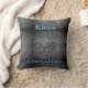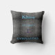 PERSONALIZE ESTA ALMOFADA COM O NOME DA SUA GINASTA! Almofada preta e branca mostrada com letras azuis.