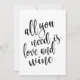 Um elegante sinal de casamento de ponta, apresenta o texto "Tudo o que você precisa é amor e vinho" em uma fonte de letra extrovertida, a textura da pincelada adiciona um sentimento espontâneo e divertido. A cor do fundo pode ser personalizada de acordo com as suas necessidades e preferências, por favor entre em contato comigo se tiver algum pedido especial.