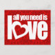 "tudo que você precisa é de amor" design tipográfico em damasco vermelho com fundo de coração. Desenhada por Sarah Trett.