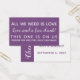 "Tudo que precisamos é de amor. Amor e bebida livre! Esta é sobre nós. Resgatar por uma bebida grátis para adultos." Cada uma das quatro linhas de texto foi adicionada separadamente e pode ser editada na íntegra, quer você queira alterar o texto, tamanho, fonte, cor ou posição. Todas as palavras na frente são brancas sobre um fundo roxo editável. // No verso, o "tipo de rico" foi usado para renderizar a palavra "Cheers!" que foi rotacionada e colocada sobre a banda roxa ao longo do lado esquerdo. O outro tipo foi manipulado no sentido inverso: seus nomes e datas aparecerão no texto roxo sobre um fundo branco. Você pode mudar qualquer uma das cores se quiser uma paleta diferente. // Por favor, não hesite em atender a solicitações especiais ou se precisar de ajuda para personalizar a assistência. // 9 // Concebida por Melody Watson para Paper Muserie.