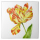 Este azulejo cerâmico tem uma pintura chamada 'Fiery Tulip' por mim. É chamada assim como as estrias nas suas pétalas parecem chamas de fogo sobre um fundo de amarelo quente. A primavera está acabando rapidamente e as Tulips desaparecem em breve, mas com este produto você pode saborear seu encanto encantador o ano inteiro!